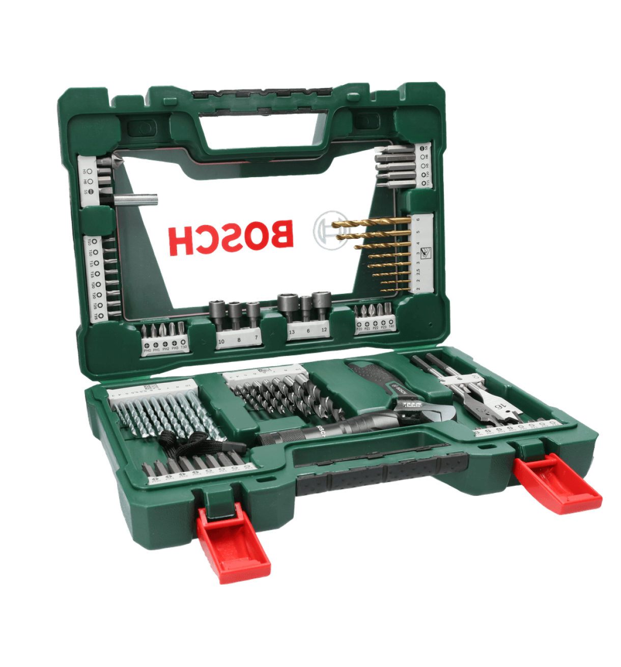 - 1 LED torch, 1 adjustable spanner, 8 HSS-TiN metal drill bits, Ø 2-6 mm, 10 masonry drill bits, Ø 3-10 mm, 8 wood drill bits, Ø 3-10 mm, 2 spade bits, Ø 16/20 mm, 13 screwdriver bits, L=50 mm, PH 0/1/2/3, PZ 0/1/2/3, S 5, T 15/20, H 5/6, 32 screwdriver bits, L=25 mm, PH 0/0/1/1/2/2/3/3, PZ 0/0/1/1/2/2/3/3, S 4/5/6, T 10/10/15/15/20/20/25/25/30/40, H 4/5/6, 6 nutsetters, Ø 6/7/8/10/12/13 mm, 1 universal holder, magnetic, 1 countersink