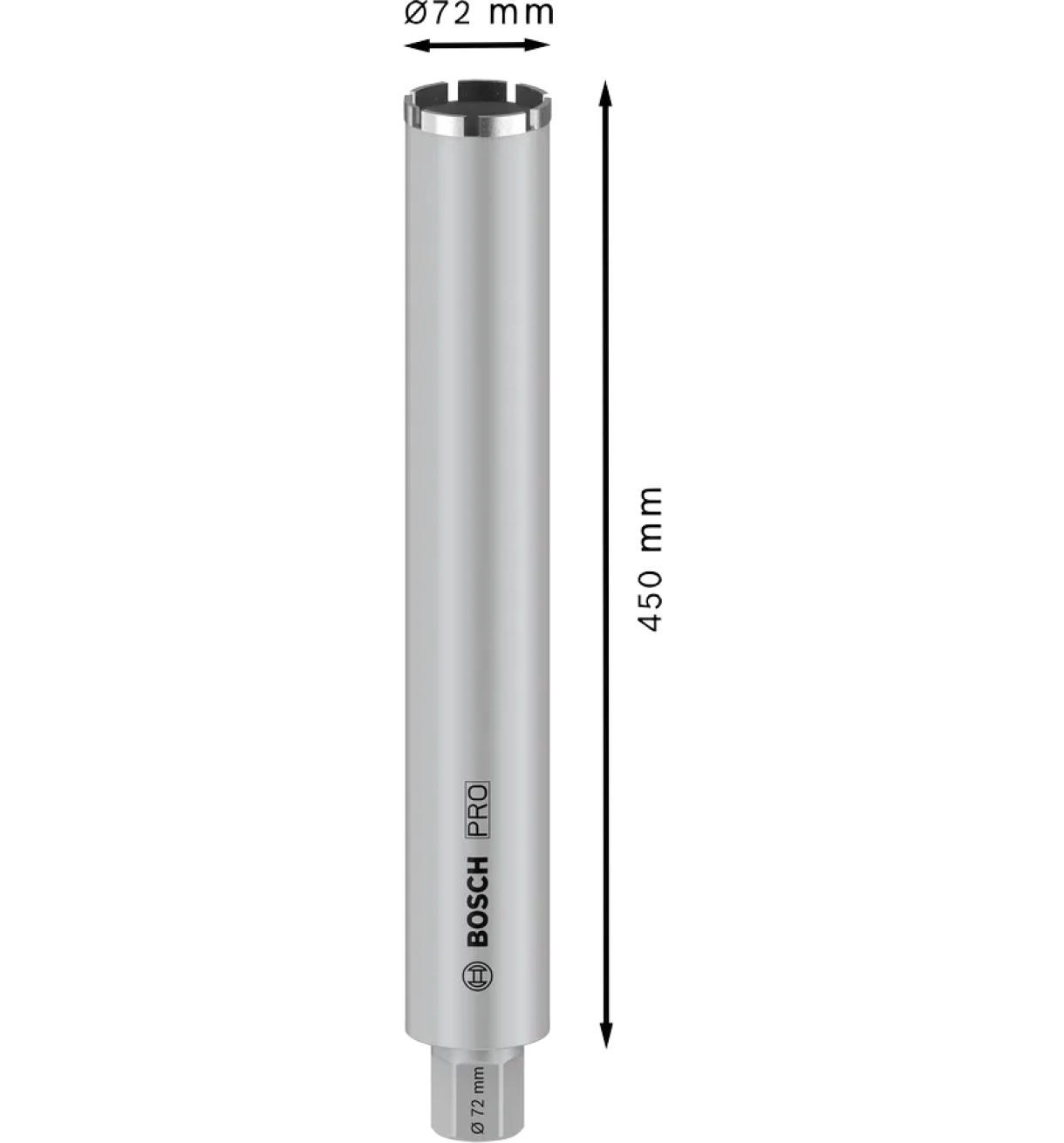 Concrete diamond drill standard allows core drilling in reinforced concrete at high speed. This drill is designed for drilling holes in reinforced concrete with wet drills. 52, working length mm: 450, number of segments: 5, segment height mm: 10.0