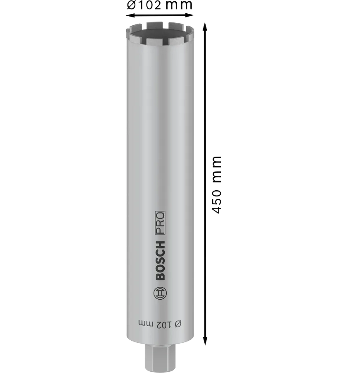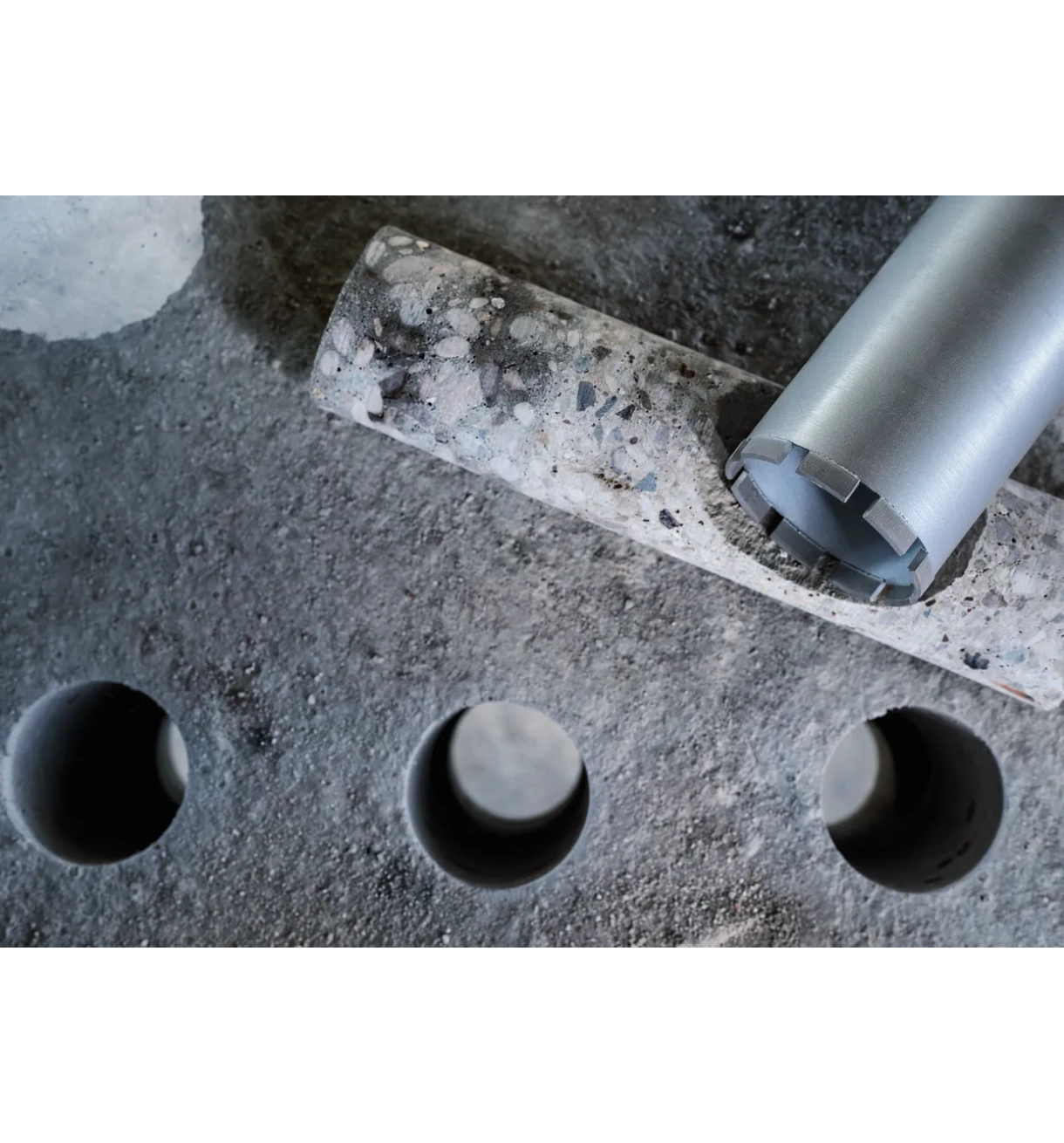 Concrete diamond drill standard allows core drilling in reinforced concrete at high speed. This drill is designed for drilling holes in reinforced concrete with wet drills.122, working length mm: 450, number of segments: 5, segment height mm: 10.0