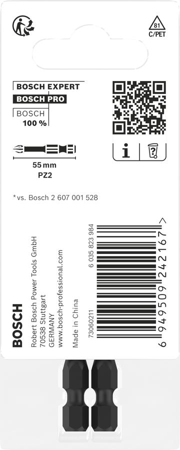 PRO Impact PZ Screwdriver Bit PZ1 25 Set contents: 2 x PZ2 insert bits 2 Pcs